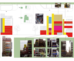 The recording of the buildings is an important exercise, not only for the analysis of spatial and sociological factors in this highly complex district, but also in order to precisely investigate the organisation and articulation of public and private life in the area, as well as collecting all the necessary information for the further design phase in Berlin, Germany, (especially for a large model of central akihabara at 1:200 scale).