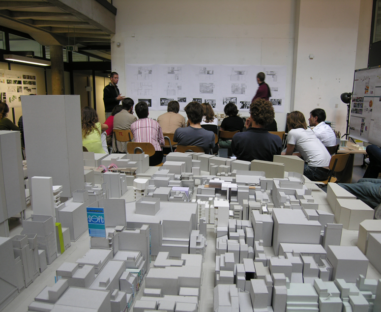 Group presentations with invited guests for the discussion of the current progress of the schemes take place every 3-4 weeks. They provide students and tutors with an overview of the current status of all projects in the studio, and offer an opportunity to discuss developments and to suggest how to proceed. In this way, the successful communication of the design process, an important ability for architects to develop, is trained in a natural manner. During intermediate presentations, a large volume of sketchy, unrefined materials is shown and discussed in order to feed the discussion of project development; only at the stage of the final presentation are clearer guidelines for presentation format and materials set down. |